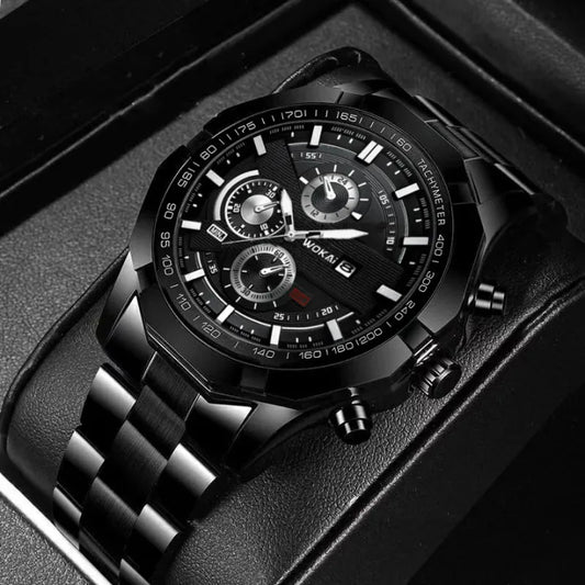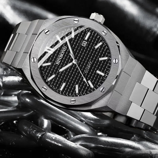 BINBOND Men's Quartz Watch – Waterproof, Steel, Calendar, Luminous.