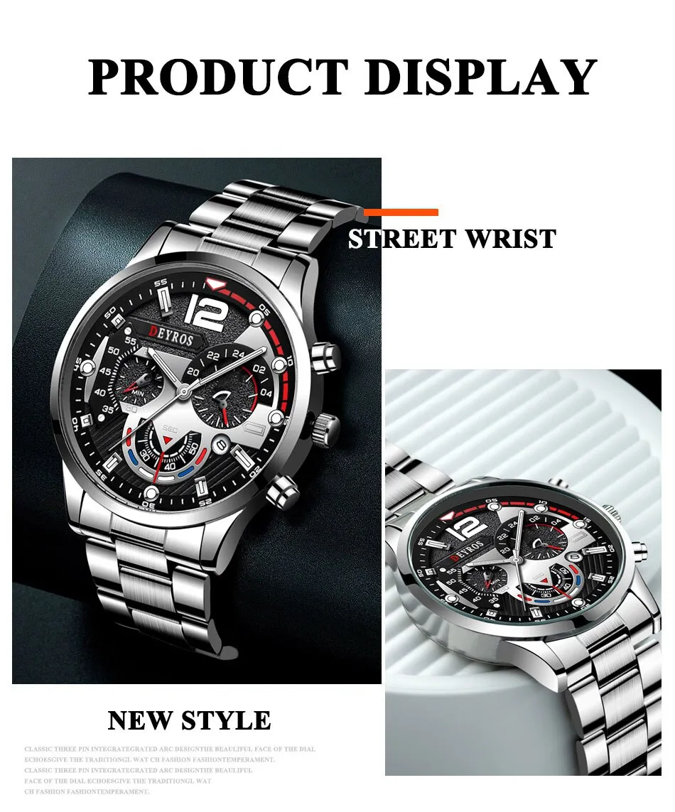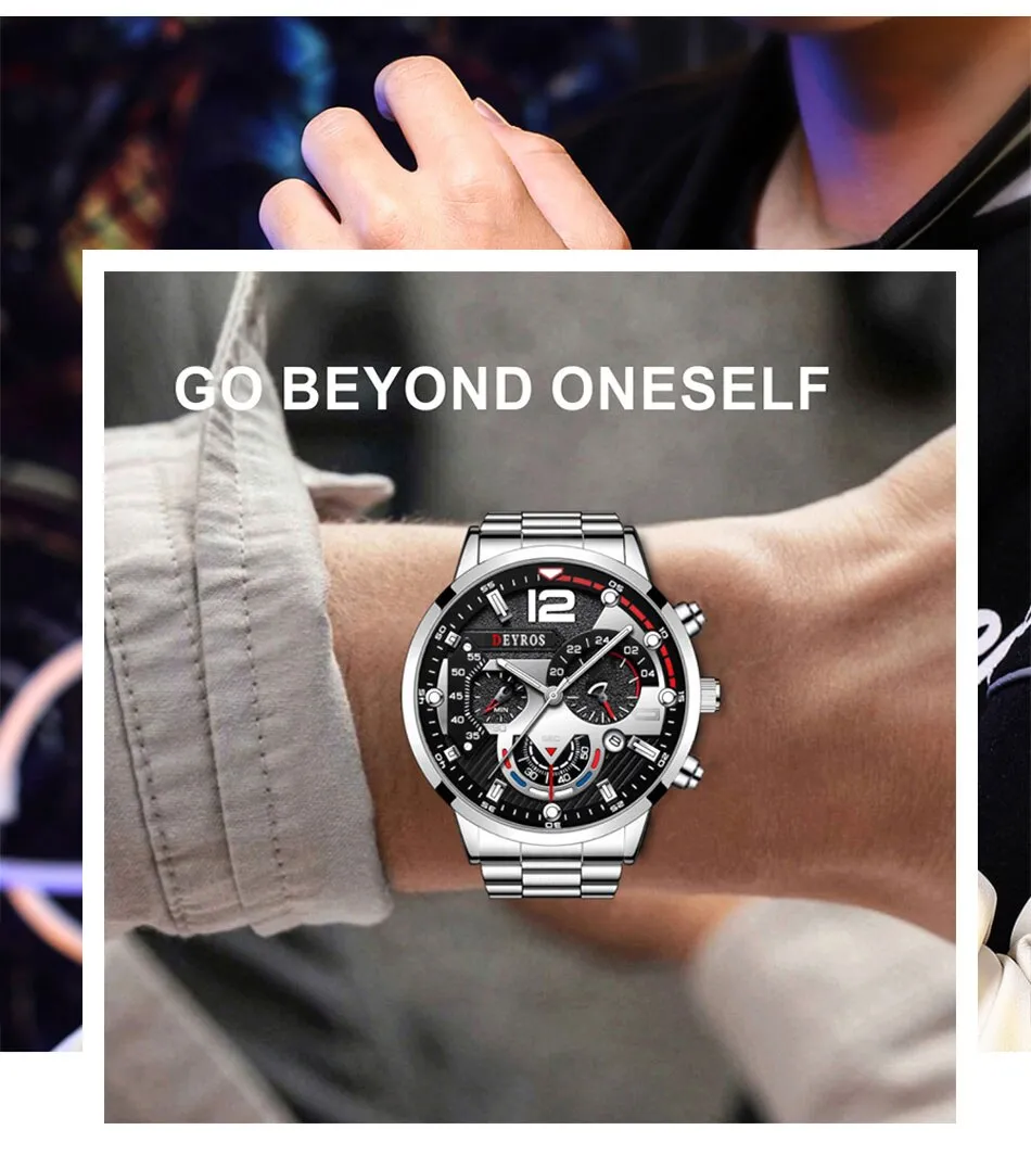 Men's Fashion Quartz Watch – Stainless Steel, Calendar, Luminous.